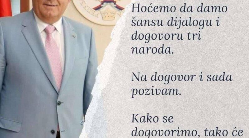 Dodik na Twitteru ponovo inspirisan: “Hoćemo da damo šansu dijalogu i dogovoru tri naroda”
